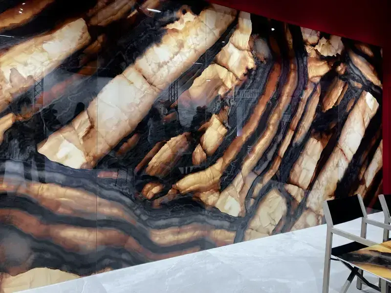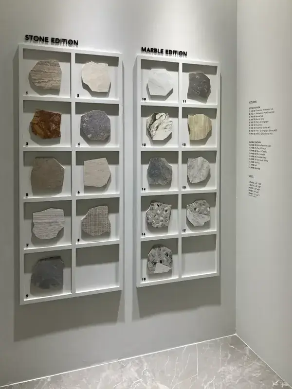 Duże formaty, efektowne żyłki naturalnego kamienia i techniczne rozwiązania. Marka pokazała też slaby dedykowane dla fasad wentylowanych, wskazując kierunek dla nowoczesnej architektury.