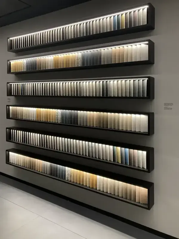 Marka skupiła się na dużych formatach, efektach kamienia, drewna i betonu oraz współpracy z projektantami, którzy nadają jej kolekcjom wyjątkowy kontekst.