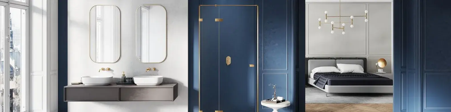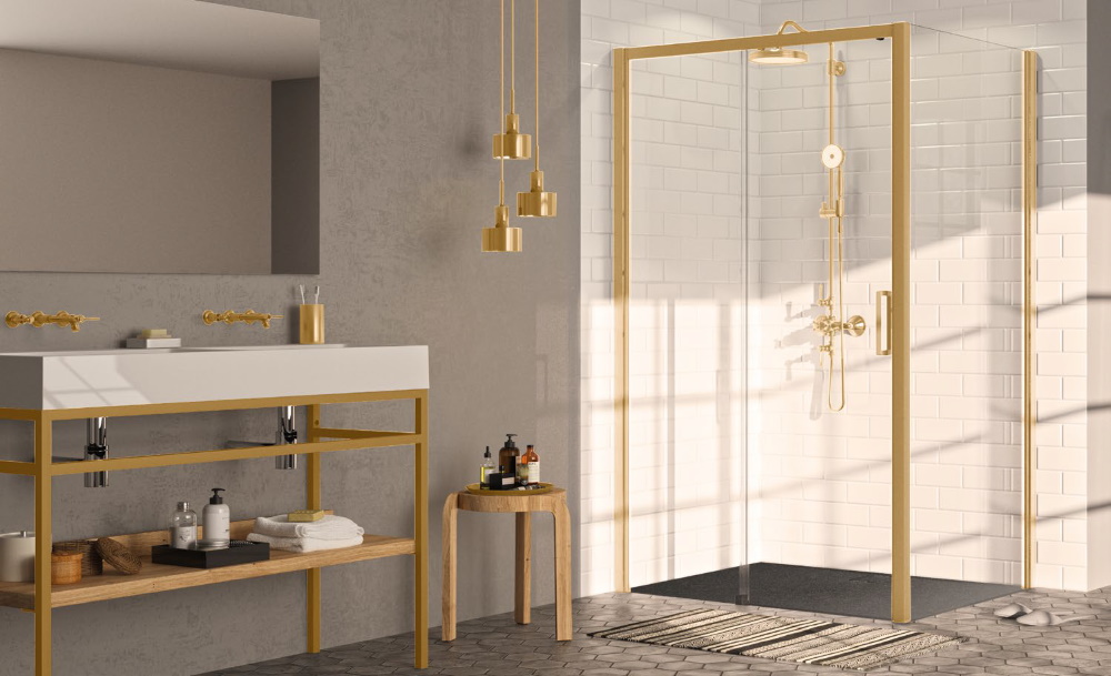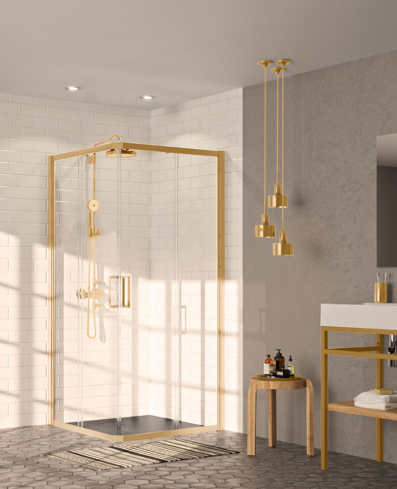 Wszystkie powyższe względy sprawiły, że to właśnie do tej kolekcji dołączono kolejny kolor profili kabin – tym razem postawiono na modne, w 2021 roku, złoto. Skomponuj je ze święcącą triumfy złotą armaturą i złotymi lampami lub innymi dodatkami w tym odcieniu – tym sposobem zadbasz o spójny wystrój całej łazienki.
