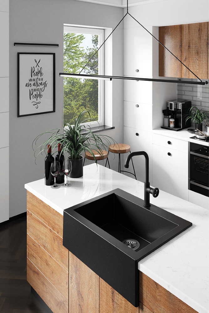 Jednak zlewozmywaki Komodo to nie tylko wyposażenie zapewniające komfort – to również efektowne uzupełnienie kuchni urządzonych ze smakiem i zgodnie z nowoczesnymi trendami. Minimalistyczną formę podkreślają dwa odcienie zlewu do wyboru: biel i czerń. Oba są ponadczasowe, dzięki czemu możliwe jest perfekcyjne dopasowanie ich do wystroju otoczenia.