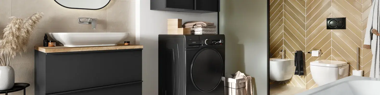 - Czarne – czerń rozgościła się w łazienkach na dobre. Aby uchwyty w tej barwie robiły wrażenie, można zestawić je z czarną armaturą lub innymi dodatkami łazienkowymi. Ponadczasowa, ciemna i matowa barwa świetnie komponuje się ze wszystkimi meblami z kolekcji white.