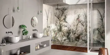 Lubisz minimalistyczny styl i ograniczasz ilość dodatków w Twojej łazience, jednocześnie chcesz poczuć karnawałowy klimat? Wykorzystaj do tego kafelki, lustra i oświetlenie. W salonach łazienek bez problemu znajdziesz srebrne, złote czy nawet brokatowe kafelki! Warto jednak zachować umiar i użyć ich jako koloru uzupełniającego. Świetnie sprawdzą się mozaiki, dekory, listwy dekoracyjne lub inserta.