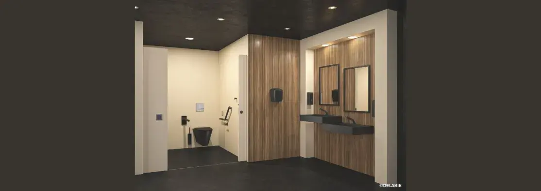 Zdobywszy kuchnie i łazienki w domach prywatnych, czerń ruszyła na podbój przestrzeni sanitarnych również w przestrzeniach publicznych. Ten ponadczasowy kolor jest bezpiecznym rozwiązaniem, które nadaje pomieszczeniom niepowtarzalny styl i wprowadza nieco industrialny, chłodny, a jednocześnie elegancki charakter. Doskonale sprawdza się w designerskich wnętrzach klubów, restauracji czy hoteli. Marka DELABIE, światowy ekspert w branży wyposażenia sanitarnego do obiektów publicznych, zdaje sobie jednak sprawę, że wygląd to nie wszystko, a do sektora publicznego potrzebne są specyficzne produkty, które jednocześnie wytrzymają intensywne użytkowanie i będą łatwe do czyszczenia, aby zapewnić użytkownikom optymalną higienę. Dlatego właśnie marka DELABIE stworzyła niepowtarzalną gamę BLACK SPIRIT. Armatura i urządzenia sanitarne oraz akcesoria BLACK SPIRIT nie tylko wpisują się w trend czerni, ale spełniają również specyficzne wymogi obiektów publicznych, takie jak: łatwe utrzymanie higieny, niezrównana wytrzymałość, łatwa instalacja i prosta konserwacja.