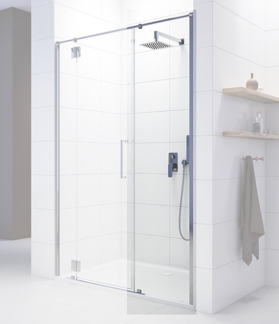 Kabina pentagonalna składa się z drzwi skrzydłowych oraz symetrycznych ścian bocznych. Szkło hartowane oraz Glass Protect zapewniają bezpieczeństwo, a dzięki magnetycznej uszczelce mamy pewność, że kabina jest szczelna.