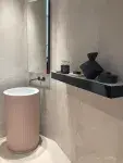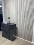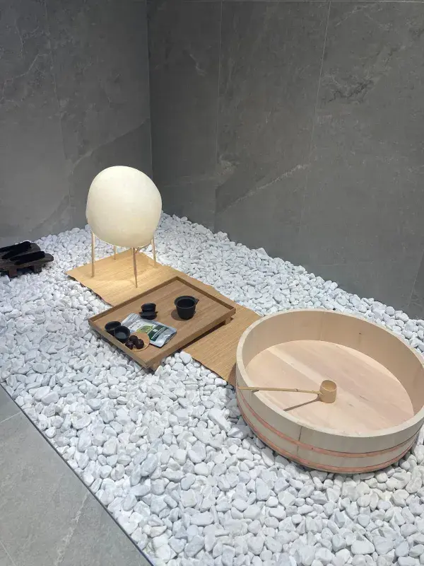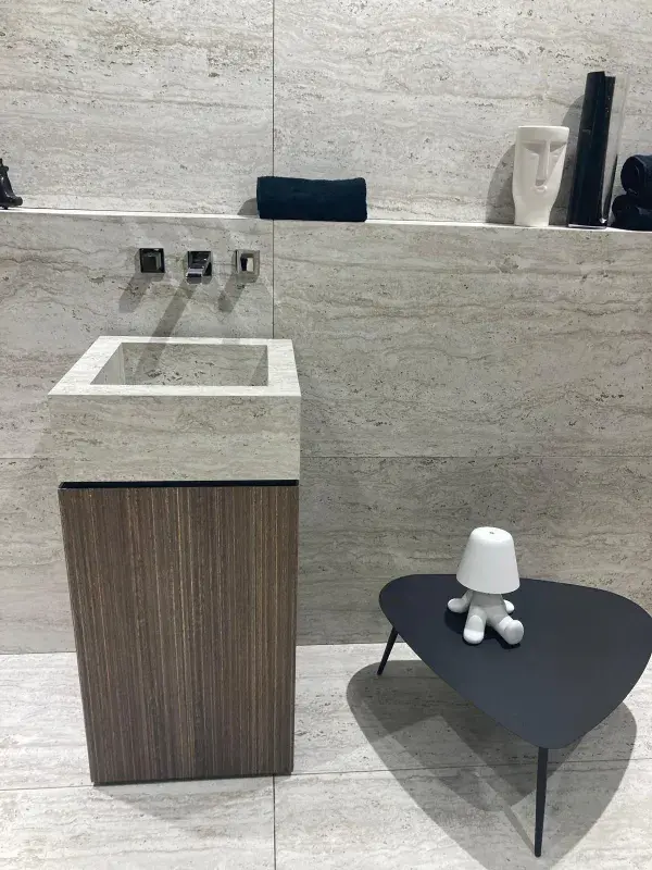Dominujące na targach hasło to „Quiet luxury”, czyli nowa definicja luksusu. Minimalizm w tym przypadku przestaje kojarzyć się z chłodnymi przestrzeniami. Za sprawą jasnych kolorów (beże i brązy), a także materiałów takich jak drewno czy kamień daje się tworzyć wnętrza nowoczesne, a zarazem przytulne. Duże znaczenie ma również funkcjonalność wnętrza. Doskonałym przykładem są płytki w dużych formatach, gdzie stawia się na minimalną ilość fug. Prezentuje się to nie tylko elegancko, ale pomaga również zadbać o porządek w łazience. 4. Dominacja minimalizmu