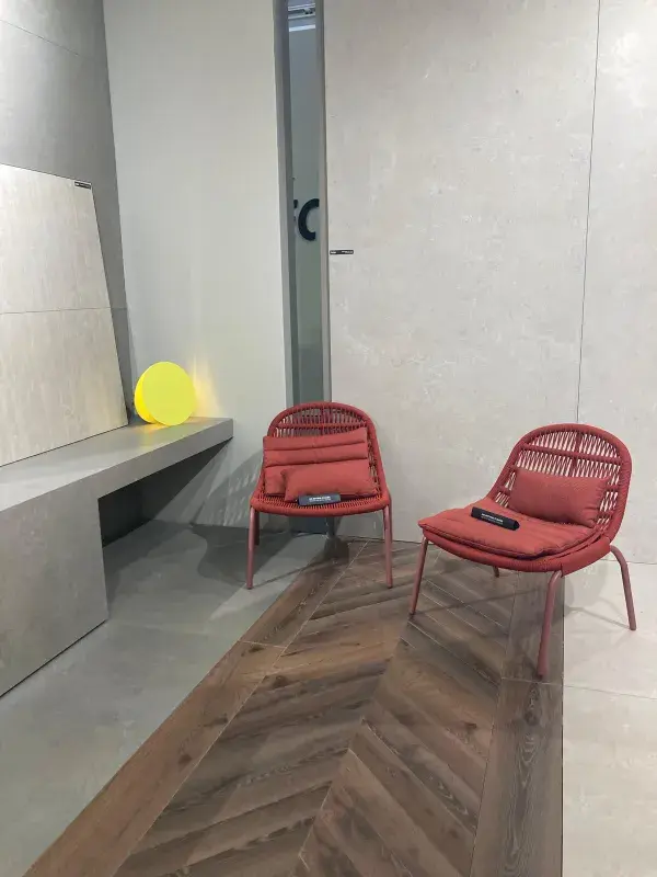Na targach zaprezentowało się również Del Conca. Marka skupiła się na powrocie do naturalnych materiałów. Wśród eksponowanych kolekcji wyróżnia się Bioterre, inspirowana techniką "ubitej ziemi", z charakterystycznymi smużkami i różnorodnymi odcieniami, które nadają wyjątkowy wyraz powierzchniom. Dodatkowo Kolekcja Bioterre z porcelanowymi płytkami łączy faktury i kolory, wprowadzając do wnętrz spokój i równowagę.