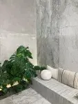 Dodatkowo w roku 2024 można zaobserwować wysunięcie na pierwszy plan inspiracji naturą. Widać dominacje surowych, organicznych materiałów, takich jak drewno czy kamień. Szczególną uwagę przyciągały powierzchnie nawiązujące do tekstury trawertynu, marmuru czy łupka, w matowych, jak również satynowych wykończeniach. Tego rodzaju materiały wprowadzają do łazienki ciepło i spokój, przy okazji także bardzo dobrze wpiszą się w modny trend zrównoważonego projektowania.