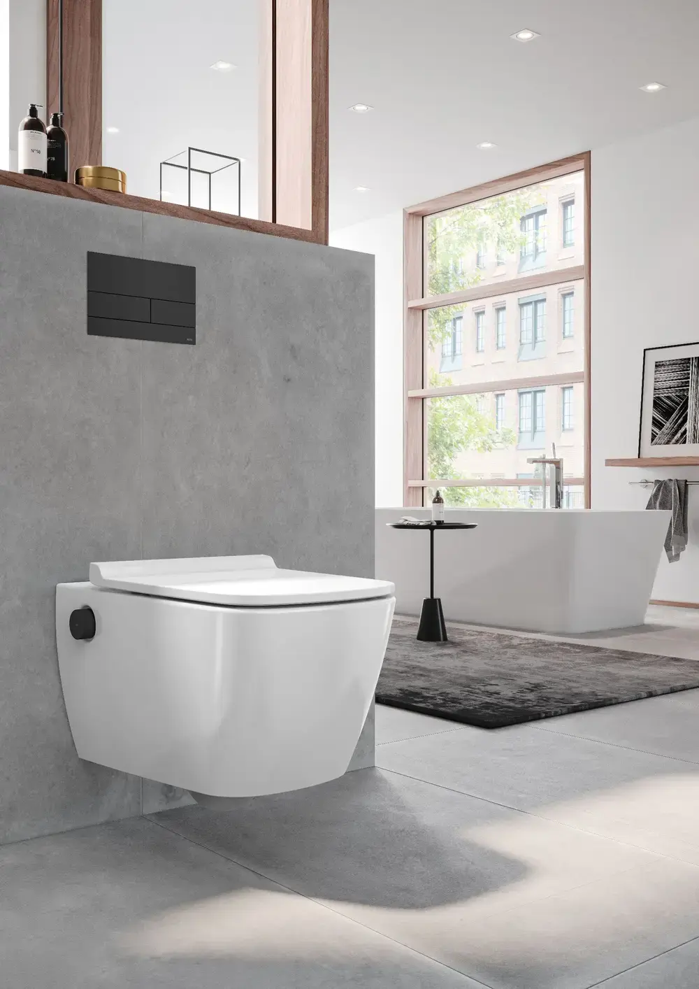 Jeśli należysz do osób, dla których ważny jest nowoczesny design, to z pewnością docenisz TECEneo za kompaktową formę i możliwość personalizacji elementów sterujących. Wykonana z wysokiej jakości ceramika charakteryzuje się eleganckim kształtem. Dzięki temu wpisuje się w każdy projekt łazienki. Dużym atutem pod względem estetyki aranżacji jest możliwość doboru pokręteł. Elementy sterujące są bowiem dostępne w różnych wykończeniach – ze szczotkowanej stali nierdzewnej (w standardzie), matowej czarnej stali nierdzewnej lub białego tworzywa z intuicyjnym oznaczeniem. To sprawia, że urządzanie pomieszczenia sanitarnego z TECEneo oferuje swobodę w tworzeniu indywidualnych rozwiązań projektowych.