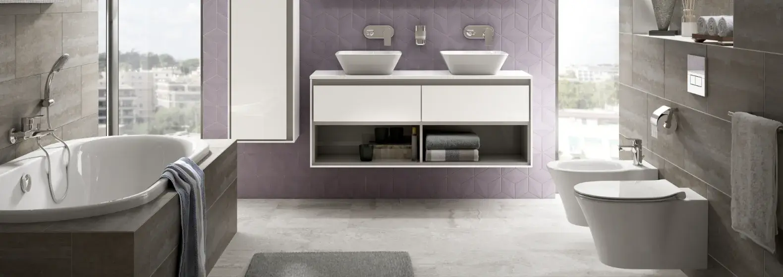 Dzięki połączeniu szerokiego wachlarza rozwiązań i zastosowaniu najnowszych technologii, zyskasz efekt komfortowej i przyjemnej w codziennym użytkowaniu łazienki.