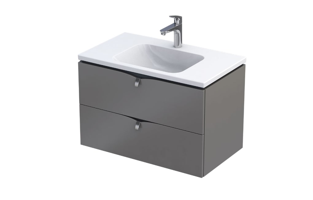 Projekt tej łazienki wyróżnia się pod wieloma względami. Po pierwsze doskonale sprawdzi się w przypadku małego metrażu. Idealnie nadaje się na łazienkę prywatną, jak również dla gości lub w hotelu. Zwróć uwagę na szarą szafkę podumywalkową Siena , która idealnie współgra z neutralnymi, jasnymi płytkami. Zestawioną ją z pojemną szafką boczną z tej samej serii. Można w niej schować wszystkie niezbędne kosmetyki, ręczniki czy inne ważne akcesoria łazienkowe.