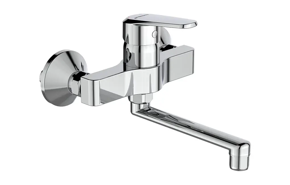 Czy wiesz, że naścienne baterie umywalkowe znowu są w modzie? Takie rozwiązanie jest bowiem na równi funkcjonalne i efektowne - przede wszystkim pozwala zaoszczędzić miejsce na blacie i umywalce. Jeśli interesuje Cię takie rozwiązanie, przyjrzyj się baterii Trinnity. Choć jest to armatura o prostej formie, nie ustępuje ona nowoczesnemu stylowi łazienek. Jej kształt nawiązuje do minimalizmu, ale oryginalnego wyglądu dodają wyraźnie zarysowane linie. Całość dopełnia barwa chromu ułatwiająca skomponowanie produktu z akcesoriami i metalicznymi detalami w pomieszczeniu. Wysokość baterii to 155 mm, zaś jej głębokość 220 mm. Wyposażona jest w pojedynczy uchwyt, głowicę ceramiczną i ruchomą wylewkę, która sprawdza się w większych misach umywalkowych. Wykonana została z mosiądzu, co nadaje jej trwałość i doskonałą żywotność.