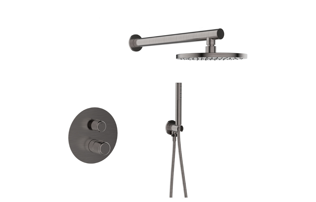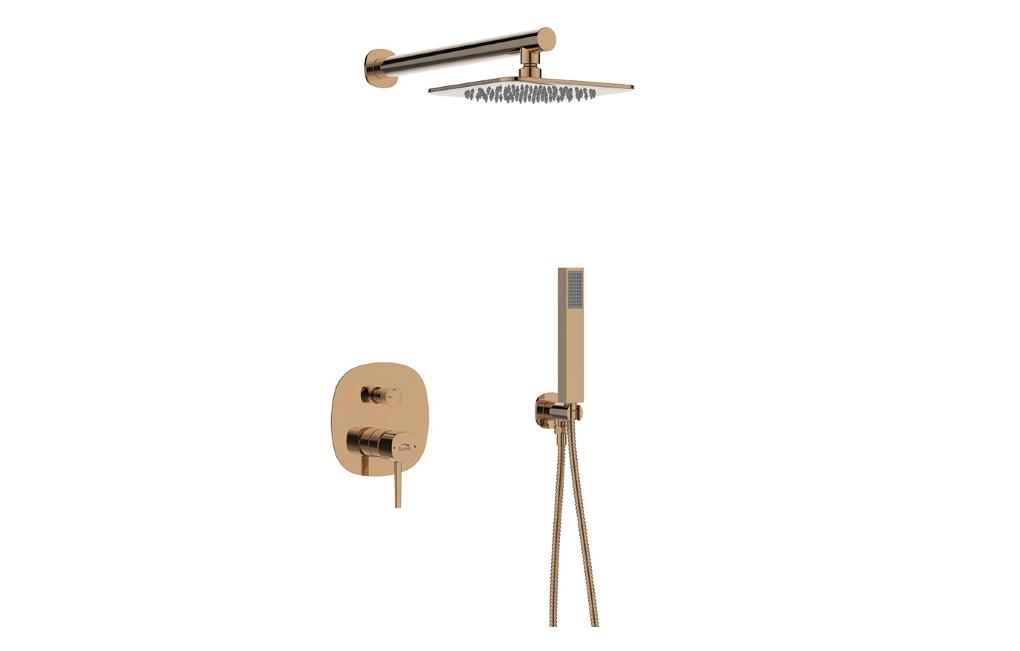 Chcesz stworzyć piękną i funkcjonalną strefę prysznicową i poświęcić na to jak najmniej czasu? W takim razie wybierz gotowy pakiet natryskowy, z którym zadbasz o swój komfort w czasie kąpieli. W komplecie znajdziesz baterię przeznaczoną do montażu pod tynkiem, uchwyt ścienny wraz ze słuchawką prysznicową oraz głowicę natrysku umożliwiającą zażywanie kąpieli w strugach przypominających deszcz. Wszystkie te elementy utrzymane są w wyjątkowych kolorach: eleganckim chromie, różowym złocie, połyskującym złocie, dzięki czemu sprawdzą się w fantazyjnych stylizacjach. Takie barwy pięknie korespondują z modną obecnie szarością, pełnymi przepychu aranżacjami glamour, ale też z łazienkową klasyką, czyli bielą i ceramiką sanitarną. Spodobał Ci się zestaw w kolorze różowego złota? Sprawdź również inne dostępne barwy: chrom i czerń. Wraz z nimi kreowanie łazienki stanie się niezwykle proste!
