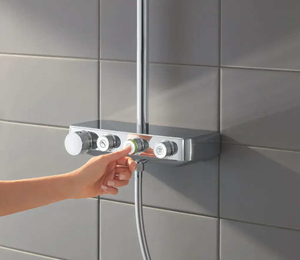 Marzysz o kąpieli niczym w strugach deszczu? Z nowoczesnymi zestawami prysznicowymi nareszcie będzie to możliwe. Marka Grohe przygotowała zestaw Euphoria Smart Control, w którym główną rolę odgrywa deszczownica ze strumieniami GROHE PureRain i Jet Euphoria 110 Massage, które zapewniają wyjątkowe doznania. Już podczas pierwszych chwil kąpieli poczujesz masaż ciała i nabierzesz sił lub zrelaksujesz się po ciężkim dniu. Niezbędnym elementem jest tu także słuchawka prysznicowa z białą tarczą i 3 różnymi strumieniami wypływającej wody: Rain, SmartRain i Massage. Sprawdź, który będzie najlepszy dla Ciebie! Dużą uwagę zwraca tu także przełącznik termostatu z deszczownicy na prysznic ręczny, dzięki któremu szybko decydujesz, jaką opcję kąpieli wybierasz. Z Grohe prysznic to przyjemność!