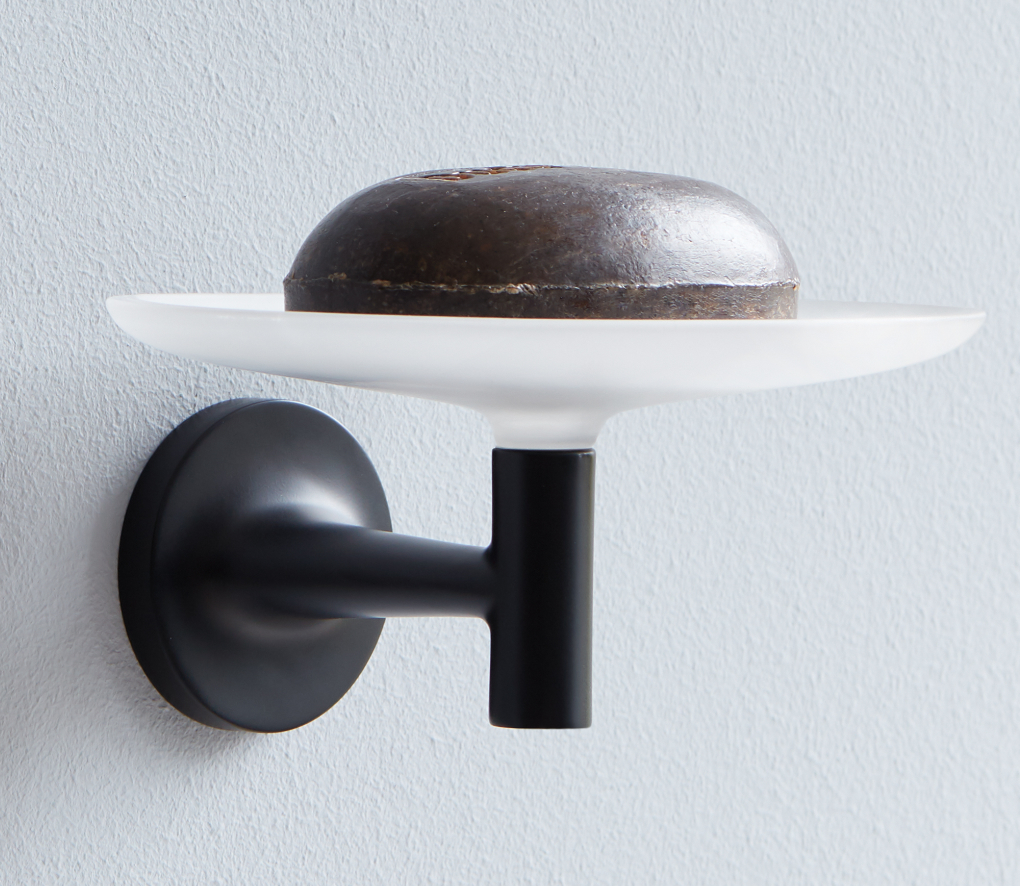 Masz dosyć zabrudzeń po mydle położonym bezpośrednio na umywalce lub, co gorsza, na blacie? W takim razie koniecznie zaopatrz się w mydelniczkę, czyli specjalną podstawkę do przechowywania mydła w kostce. Szczególnie funkcjonalny jest model Starck T, który możesz zamocować bezpośrednio na ścianie, oszczędzając tym samym miejsce na blacie i rancie umywalki. Element natynkowy ma średnicę 5 cm, a cała mydelniczka ma wymiary 10,6 x 14 cm, więc łatwo znajdziesz na nią przestrzeń na ścianie. Warto zwrócić uwagę na efektowną stylistykę produktu - sama podstawka na mydło stworzona jest z matowego szkła, zaś uchwyt utrzymany jest w chromie lub czarnym kolorze o matowym wykończeniu. Produkt prezentuje się bardzo gustownie i z powodzeniem doda nowoczesnego charakteru Twojej łazience. Mydelniczka dostępna jest też w odcieniu chromu do bardziej stonowanych wnętrz.