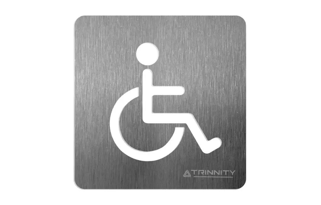 Za pomocą szyldu Trinnity w łatwy sposób oznaczysz drzwi prowadzące do toalety dla osób z niepełnosprawnością. Dostępne są także inne wzory szyldów WC z tej kolekcji - dopasuj je do potrzeb!