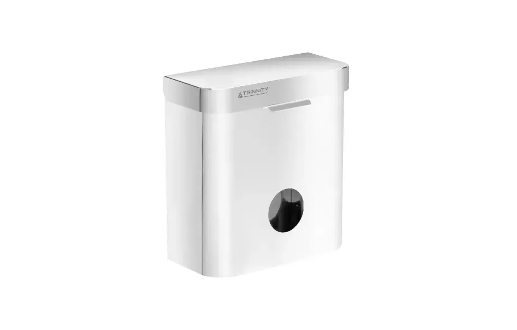 Pojemnik na odpady i torebki higieniczne Trinnity został wykonany ze stali nierdzewnej, co świadczy o jego doskonałej trwałości i odporności na uszkodzenia. Produkt przyciąga uwagę niebanalnym, bardzo eleganckim wyglądem, a to za sprawą metalicznej barwy i polerowanego wykończenia.