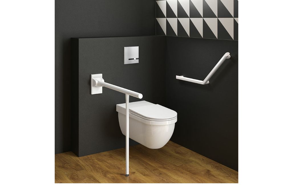 Poręcz uchylna Be-Line® z podporą 650 mm Poręcz uchylna Be-Line® charakteryzuje się czystymi liniami i dyskretną estetyką, która w naturalny sposób komponuje się z przestrzenią. Produkt posiada zaokrąglony kształt, który w połączeniu ze spłaszczeniem antyrotacyjnym zapobiegającym ślizganiu się dłoni, umożliwia bardziej ergonomiczny chwyt. Produkt posiada podporę umożliwiająca zabezpieczenie instalacji, służąc jako wzmocnienie, kiedy samo mocowanie ścienne jest niewystarczające. W pozycji złożonej poręcz zajmuje bardzo niewielką przestrzeń. A ponieważ jest zdejmowana, umożliwia również ograniczenie liczby poręczy zainstalowanych w obiektach (w łatwy sposób można ją zastąpić płytą zakrywającą mocowania). Produkt dostępny jest w trzech wykończeniach: antracytowy metalik, matowa czerń i matowa biel.