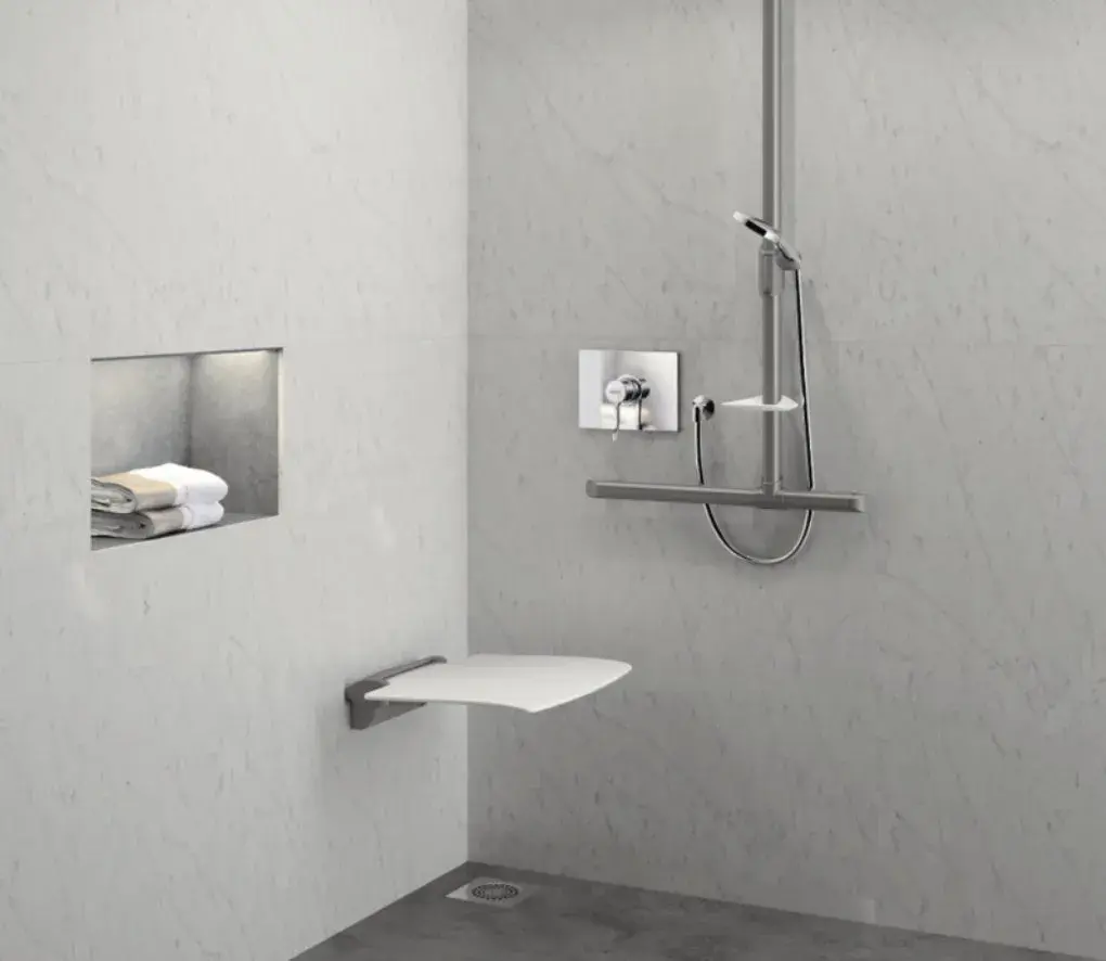 Chcesz, by seniorzy w Twojej rodzinie oraz osoby z ograniczeniami ruchowymi mogły w bezpieczny i wygodny sposób zażywać kąpieli w łazience? W takim razie wyposaż ją w prezentowane siedzisko natryskowe Be-Line. Dzięki niemu każdy, kto poczuje się zmęczony lub nie będzie w stanie stanąć pod natryskiem w czasie kąpieli będzie mógł wygodnie usiąść i się umyć. Montuje się je do ściany pod prysznicem i można je dowolnie składać i rozkładać. Ma antypoślizgową powierzchnię zapewniającą stabilność oraz wyposażone jest w solidne, odporne na obciążenia mocowanie z litego aluminium. Z siedziska z powodzeniem mogą korzystać osoby ważące do 135 kg. Produkt ma wymiary 455 x 450 x 90 mm, a po złożeniu zaledwie 83 x 470 mm, więc jeśli nie chcesz z niego korzystać, nie będzie Ci przeszkadzało w czasie pielęgnacji ciała.