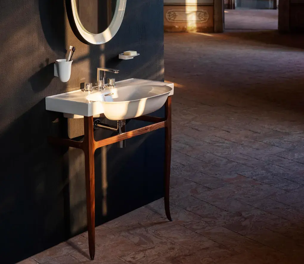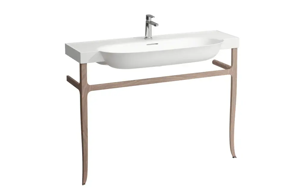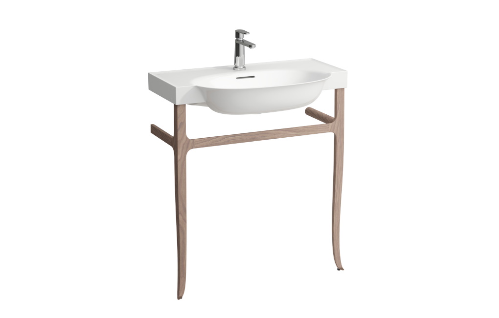 Poszukujesz oryginalnego pomysłu na wykończenie swojej strefy umywalkowej? Zapomnij o szafkach podumywalkowych, szerokich blatach i postumentach. Zamiast tego postaw na stojący stelaż podumywalkowy z kolekcji The New Classic. Jego lekka forma i wykonanie z drewna sprawiają, że stanie się on wyjątkową dekoracją otoczenia. Delikatnie zdobione nogi przywołują na myśl ornamenty znane z łazienek w stylu angielskim - są jednak o wiele subtelniejsze i stylizowane w nowocześniejszy sposób. Również łagodny orzechowy kolor świadczy o eklektycznym podejściu do designu tego produktu - jest to dość chłodny odcień drewna, co nie znaczy jednak, że nie dodaje otoczeniu przytulnego charakteru. Stelaż The New Classic dostępny jest w trzech rozmiarach do wyboru, abyś z powodzeniem mógł go dopasować do małej, średniej i dużej umywalki.