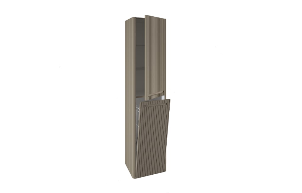 Meble do łazienki powinny być trwałe, funkcjonalne, odporne na codzienne, intensywne użytkowanie i szczególne warunki (takie, jak chociażby wysoka wilgotność). Ale jednocześnie mogą być przecież stylowe, efektowne i budzące zachwyt zarówno domowników, jak i gości. Dokładnie taka jest słupek wysoki z koszem, dwojgiem drzwi i czterema szklanymi półkami z linii Gloria 2.0 marki Devo. Praktyczności odmówić mu nie sposób, ale to, co czyni go wyjątkowym, to niezwykły wygląd. Łagodnie zaokrąglona linia i pionowe ryflowanie sprawiają, że ten projekt ma w sobie sporo modernistycznego uroku, a przy tym jest także szalenie nowoczesny. Trwałe materiały najwyższej jakości sprawiają, że nawet po długim czasie szafka Gloria 2.0 marki Devo zachowają piękny wygląd i pełnię funkcjonalności. Możesz ją połączyć z umywalką dolomitową z tej samej kolekcji.