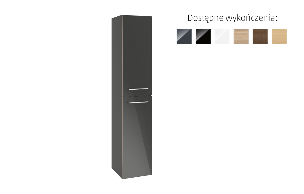 Wysoka szafka boczna zachwyca smukłą, wąską formą, którą z powodzeniem wpasujesz nawet w niewielkie pomieszczenie - mierzy ona jedynie 350 x 1760 x 370 mm. Podwieszany model nie zajmuje miejsca na podłodze. Ułatwia to utrzymanie higienicznej czystości w przestrzeni łazienkowej - bez trudu dotrzesz mopem w każdy zakamarek. Kolor Crystal Black to czerń z eleganckim połyskiem, która zaskakuje głębią i perfekcyjnie komponuje się z ceramiką utrzymaną w śnieżnym odcieniu bieli. Uzyskany w ten sposób efekt kontrastu skutecznie ożywi pomieszczenie kąpielowe. Szafkę wyposażono w 4 szklane półki, które pozwolą Ci z łatwością ogarnąć drobny chaos panujący w łazience - wszystkie kosmetyki, ręczniki oraz inne drobiazgi znajdą swoje stałe miejsce i nie będą już plątać się w zasięgu wzroku, psując doznania estetyczne.