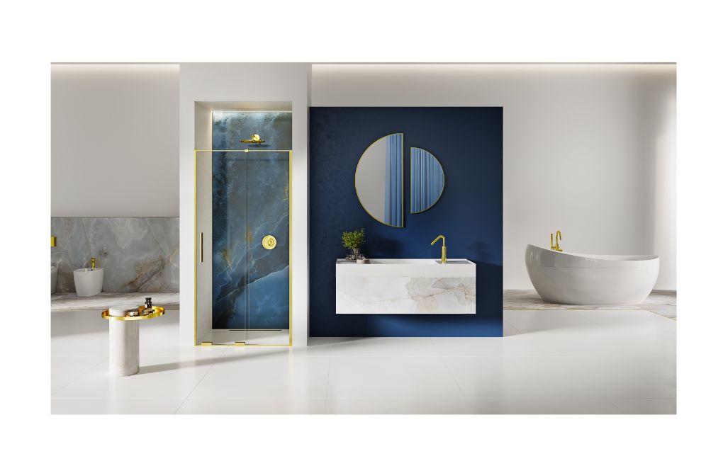 DRZWI PRZESUWNE DO WNĘKI SMART LIGHT GOLD SZKŁO PRZEZROCZYSTE / ZŁOTY 120x200