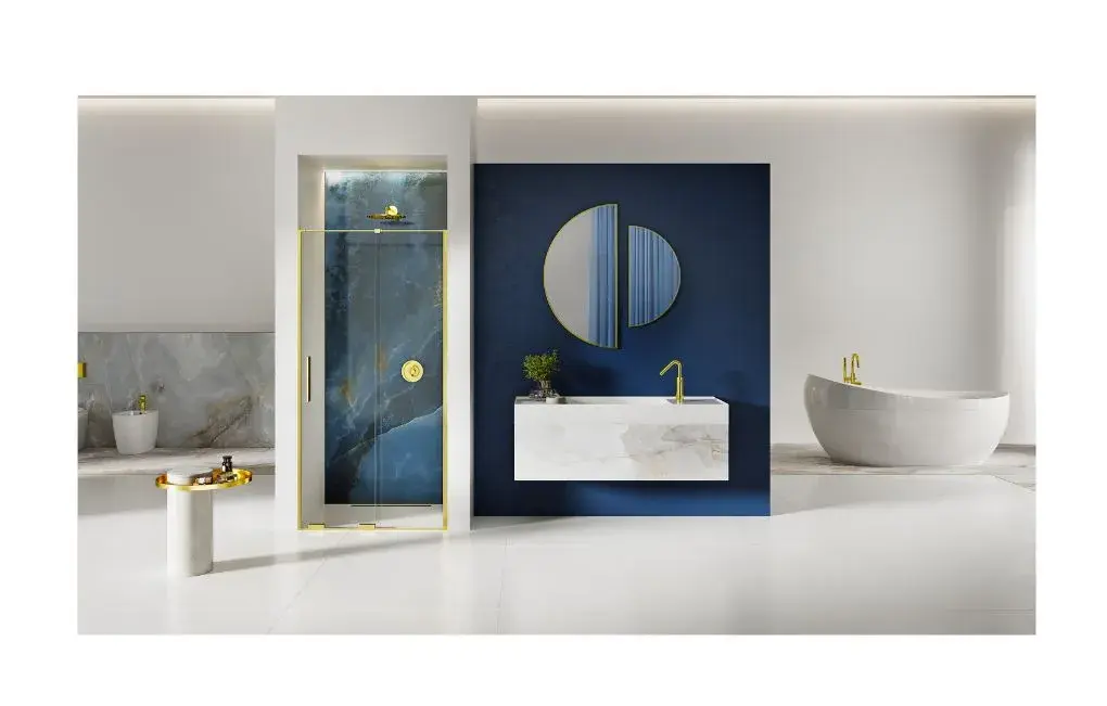 DRZWI PRZESUWNE DO WNĘKI SMART LIGHT GOLD SZKŁO PRZEZROCZYSTE / ZŁOTY 140x200