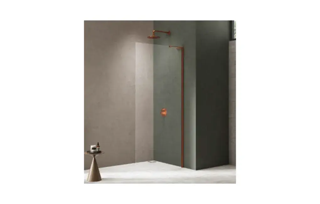ŚCIANKA PRYSZNICOWA WALK-IN NESTA SZ.PRZEZROCZYSTE/ COPPER BRUSHED WSPORNIK KĄTOWY L, 100x200 cm