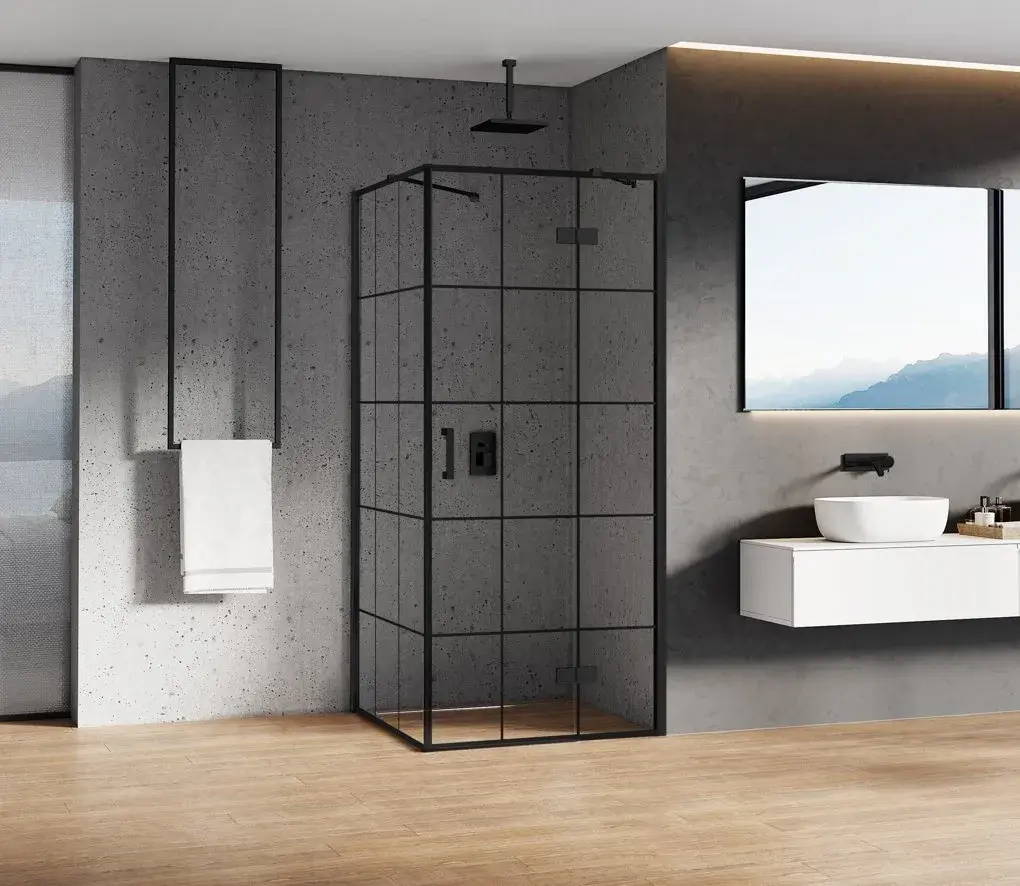 Kabina prostokątna Renoma Black doskonale sprawdzi się podczas urządzania nowoczesnych przestrzeni łazienkowych. Cechuje się bowiem niebanalnym, dość odważnym wyglądem, a to za sprawą zastosowania licznych wąskich szprosów na ściankach kabiny. Tworzą one swoiste okienka, które odróżniają ten model od innych produktów tego typu. Poza niewątpliwie atrakcyjnym wyglądem Renoma Black dba także o wygodę kąpieli użytkowników - jej wymiary wynoszące 120 x 90 x 195 cm gwarantują pełną swobodę ruchów. Ścianki wykonane zostały z hartowanego 6-milimetrowego szkła pokrytego warstwą ochronną Active Shield. Taka powłoka ma właściwości hydrofobowe, więc woda wraz z zanieczyszczeniami nie osadza się na niej, lecz od razu spływa, ograniczając powstawanie smug i zabrudzeń na szkle. Czyszczenie kabiny nie sprawi Ci zatem trudności, a Twoja łazienka zawsze będzie wyglądać higienicznie i estetycznie.