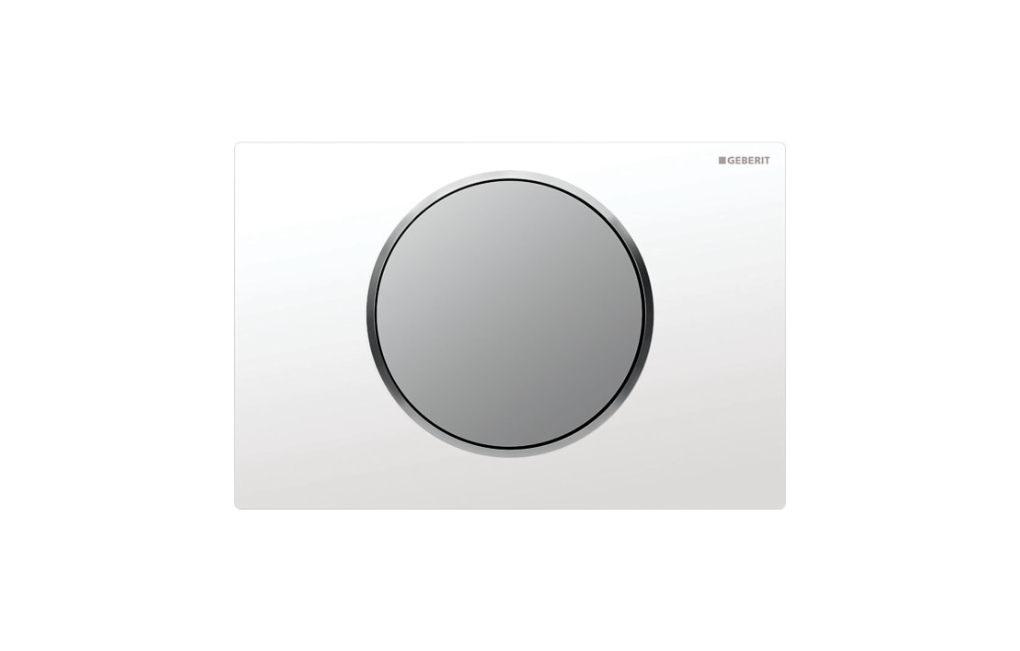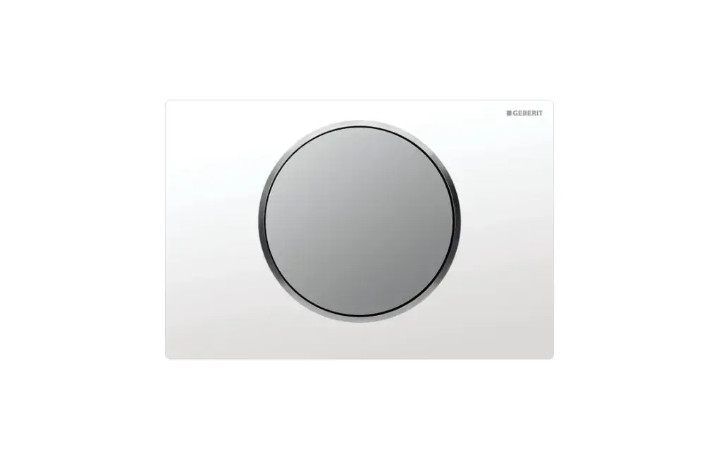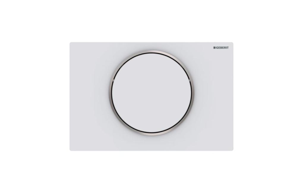 Przycisk uruchamiający Geberit Sigma10, przedni, biały mat-biały-biały mat, easy-to-clean, okrągły. Jeśli w czasie wykańczania swoich wnętrz stawiasz na prostotę i minimalizm, z pewnością docenisz design prezentowanego przycisku Sigma10. Na prostokątnej podstawce o wymiarach 246 x 164 mm umieszczony został duży, okrągły przycisk - całość utrzymana jest w kolorze białym poza delikatną obwódką okalającą mechanizm sterujący. Produkt przystosowany jest do współpracy ze spłuczkami zamontowanymi pod tynkiem i pozwala na ich łatwą obsługę i ekonomiczne używanie - wszystko za sprawą technologii start/stop, dzięki której możliwe jest zatrzymanie spłukiwania w dowolnym momencie. Przycisk Sigma10 wykonany został z tworzywa ABS i stali nierdzewnej - cechuje się wysoką odpornością na uszkodzenia, a przy tym prezentuje się bardzo solidnie i elegancko zarazem. Produkt należy zamontować na ścianie poziomo i uruchamiać go od przodu.