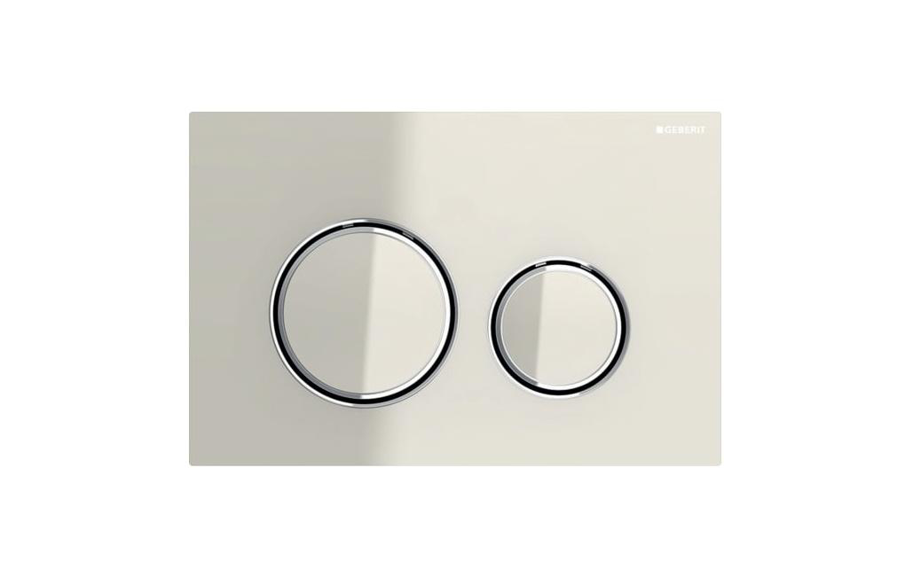 Przycisk uruchamiający Geberit Sigma50, przedni, uniwersalny, okrągły.Chcesz stworzyć w swojej łazience nowoczesną strefę toaletową z prawdziwego zdarzenia? W takim razie zwróć uwagę na rozwiązania podtynkowe - miska zawieszona na ścianie oraz spłuczka schowana pod tynkiem zaprezentują się naprawdę imponująco. Jednak aby móc swobodnie uruchamiać tę drugą, potrzebny Ci będzie prezentowany przycisk Sigma21. Produkt ma bardzo prostą konstrukcję - na prostokątnej płytce znajdują się dwa popychacze - większy i mniejszy, być mógł decydować o ilości wody, jaką chcesz zużyć na spłukanie. Oba przyciski są okrągłe i estetycznie wpisane w podstawę. Cynkowe obramowanie wykończone szkłem prezentuje się bardzo efektownie, a elegancji całości dodaje nowoczesna kolorystyka produktu, dostępna w wielu wymiarach, w tym dwie nowości. Wybierz odcień lava, jeśli interesują Cię łazienki z ciemnymi wykończeniami i czarnymi detalami. Barwa sand, natomiast, sprawdzi się lepiej w subtelniejszych aranżacjach - pięknie komponuje się z bielą i odcieniami kremu.