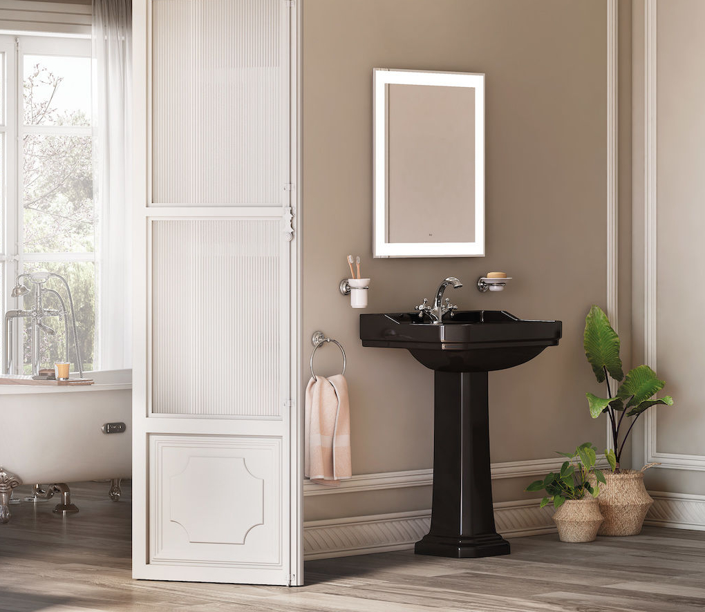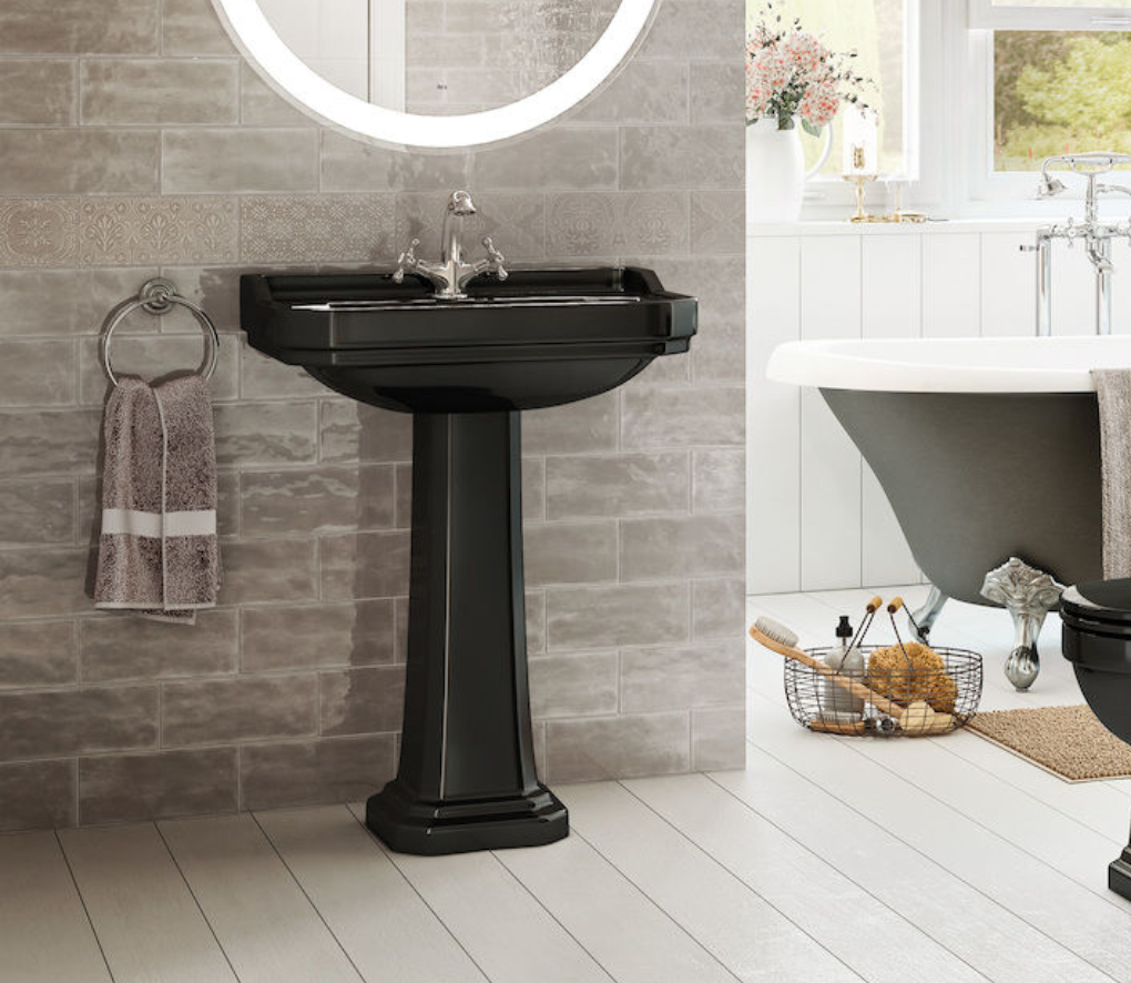 Chcesz stworzyć aranżację łazienkową inną niż wszystkie? Pomogą Ci w tym dobrze znane, lecz nieco zapomniane już rozwiązania. Jednym z nich okaże się zastosowanie postumentu pod umywalkę w miejscu popularniejszych obecnie szafek. Co zyskasz? O wiele dekoracyjniejszą postać strefy umywalkowej. Zwróć uwagę na wyjątkowe kształty produktu - dzięki rozszerzeniu i zdobieniom na dole postument przywodzi na myśl klasyczne kolumny. Skomponowany z umywalkami z kolekcji Carmen stworzy spójną, bardzo efektowną całość, nawiązującą wyglądem do stylu angielskiego. Jednak zaskoczeniem może okazać się nietypowe wykończenie ceramiki. Zamiast ponadczasowej bieli zastosowano tu bowiem połyskującą czerń tak modną w nowoczesnych aranżacjach łazienek. Jest to zatem swoiste przemieszanie stylów, które zachwyci każdego, kto szuka niebanalnych rozwiązań aranżacyjnych.