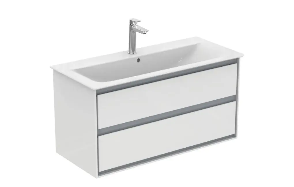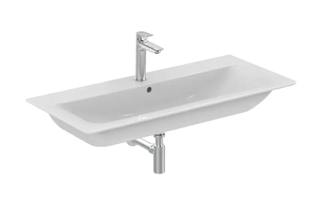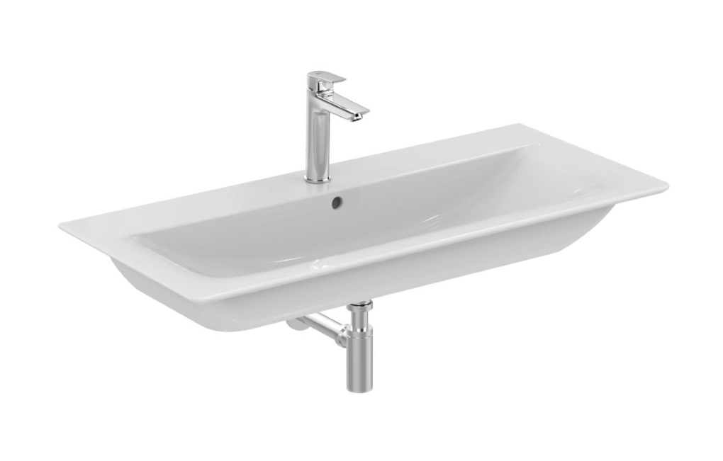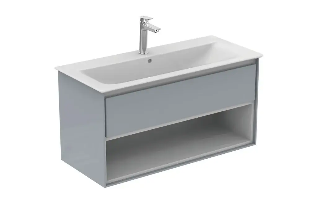 Strefa umywalkowa jest jednym z ważniejszych miejsc w łazience - to właśnie tam wykonuje się większość codziennych zabiegów higienicznych i pielęgnacyjnych, dlatego trzeba zadbać, by przestrzeń ta była jak najbardziej komfortowa. Umożliwi Ci to prezentowana umywalka meblowa Connect Air o wymiarach 104x46 cm. Dzięki tak dużej szerokości tworzy doskonałą przestrzeń do mycia rąk, twarzy czy usuwania zarostu, a w razie potrzeby można używać jej w dwie osoby. Produkt ma przygotowany otwór przelewowy i na baterię - ten drugi znajduje się na półce, która posłuży Ci również do przechowywania mydła, akcesoriów i innych kosmetyków. Umywalkę możesz skompletować z szafkami z kolekcji Connect Air albo przymocować ją do ściany i wykończyć dekoracyjnym syfonem. Dzięki temu możesz bez trudu dopasować ją do wystroju otoczenia.
