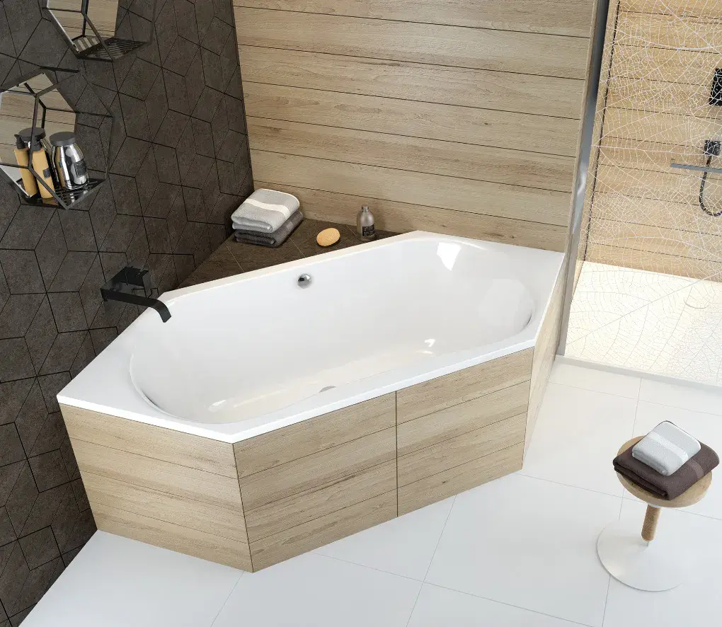 Marzysz o łazience, która będzie wyjątkowa w każdym szczególe? Nie chcesz urządzić jej w sztampowy, nudny sposób? W takim razie zwróć uwagę na prezentowaną wannę z serii Luxo! Jej sześciokątny kształt daje ogromne możliwości aranżacyjne, a także można go łatwo dopasować do potrzeb - zamontować w narożniku lub przy ścianie. Wymiary wanny to 90x190 lub 200 cm, a jej głębokość 49 cm. Zyskasz w niej więc sporo przestrzeni do komfortowej pielęgnacji ciała oraz długich, odprężających kąpieli. Odpływ cechuje się wydajnością i umiejscowiony jest w centralnej części dna. Wanna wykonana została z ciepłego akrylu, co dodatkowo poprawia wygodę jej użytkowania - materiał jest przyjemny przy kontakcie ze skórą. Perfekcyjnie gładkie i białe ścianki bez trudu utrzymasz w czystości, dbając tym samym o najwyższy poziom higieny w pomieszczeniach sanitarnych.