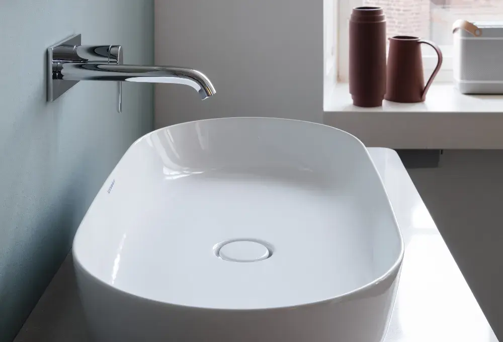 Trzy rozmiary owalnych umywalek nablatowych wykonanych z DuraCeram® robią wrażenie swoimi subtelnymi liniami, dużymi wewnętrznymi misami oraz czystymi krawędziami. Opcjonalne szkliwienie na zewnątrz jest dostępne w satynowym macie w kolorach białym, szarym oraz piaskowym. Kontrast z połyskliwym białym wnętrzem umywalki podkreśla niepowtarzalność tej serii, wyjątkowej w dotyku i wyglądzie.