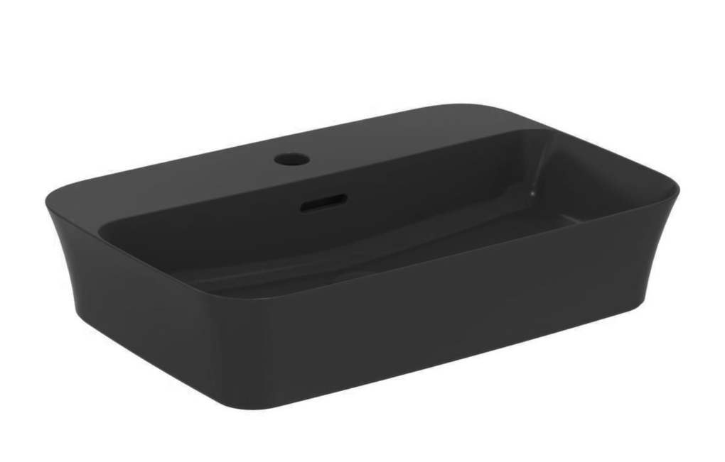 Poznaj szczegółyUmywalka nablatowa Ipalyss 55x38 cm z otworem czarny mat