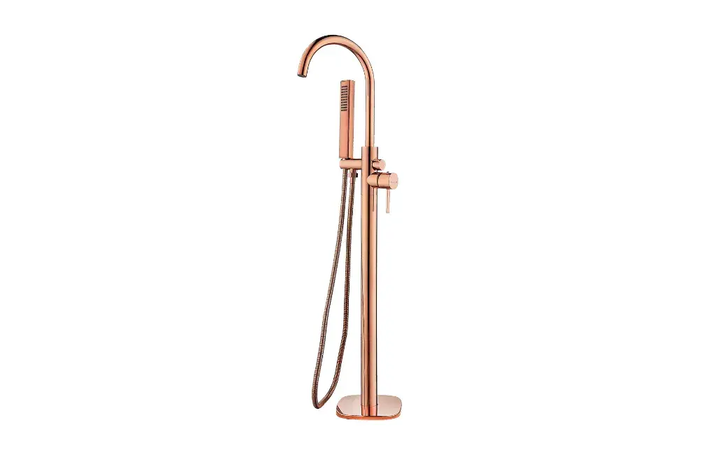 Poznaj szczegółyStojąca bateria wannowa Pola do montażu w podłodze różowe złoto