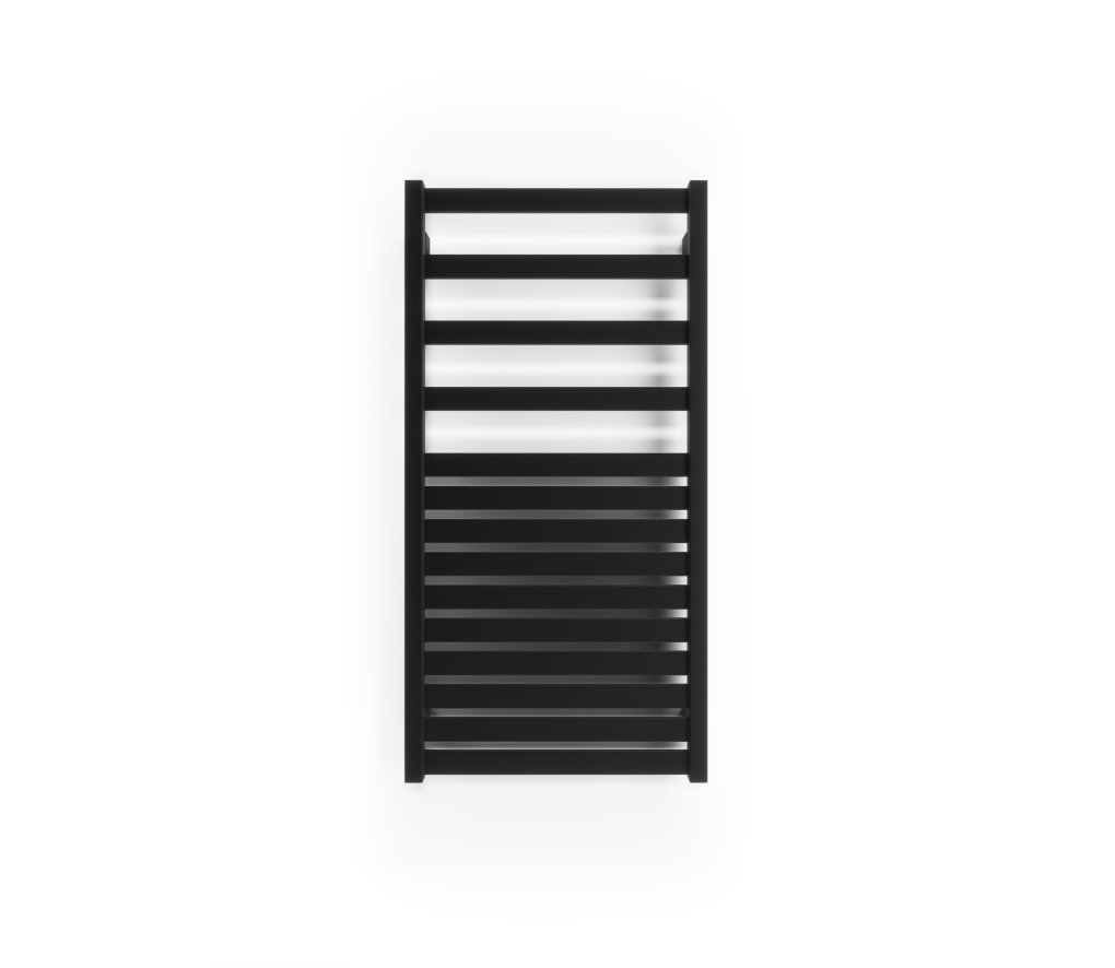 Nowoczesny grzejnik łazienkowy z płaskich rurek. Dostępny także w wąskich rozmiarach od 30 cm, idealnych do małych łazienek. Kompatybilny z wieszakami Fork.